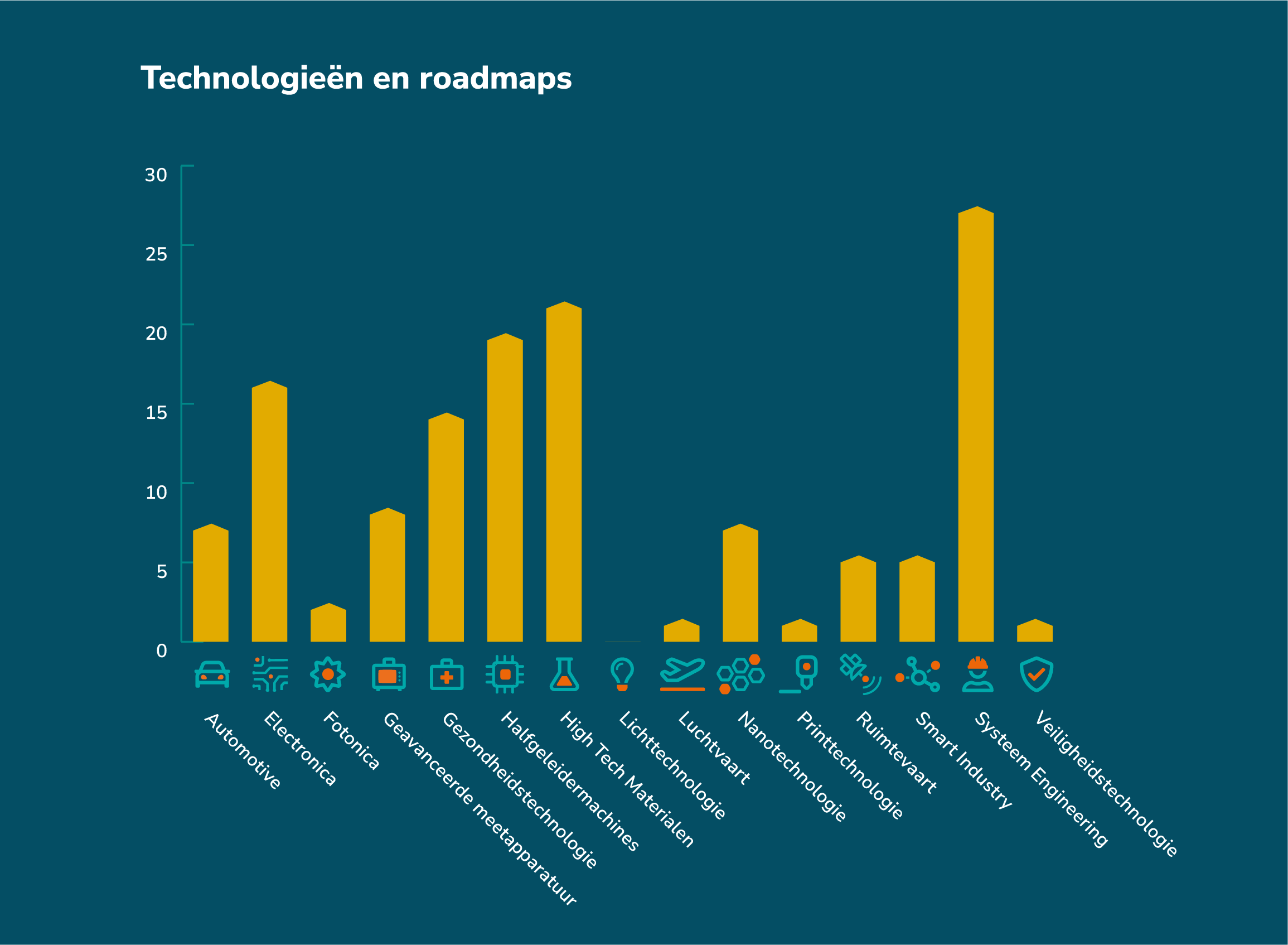 Binnen Holland High Tech ontwikkelen teams van experts in 15 technologische roadmaps  de innovaties en (sleutel)technologieën die structurele oplossingen bieden voor de urgente transities waar we nu voor staan. Innovaties met economische en maatschappelijke impact.