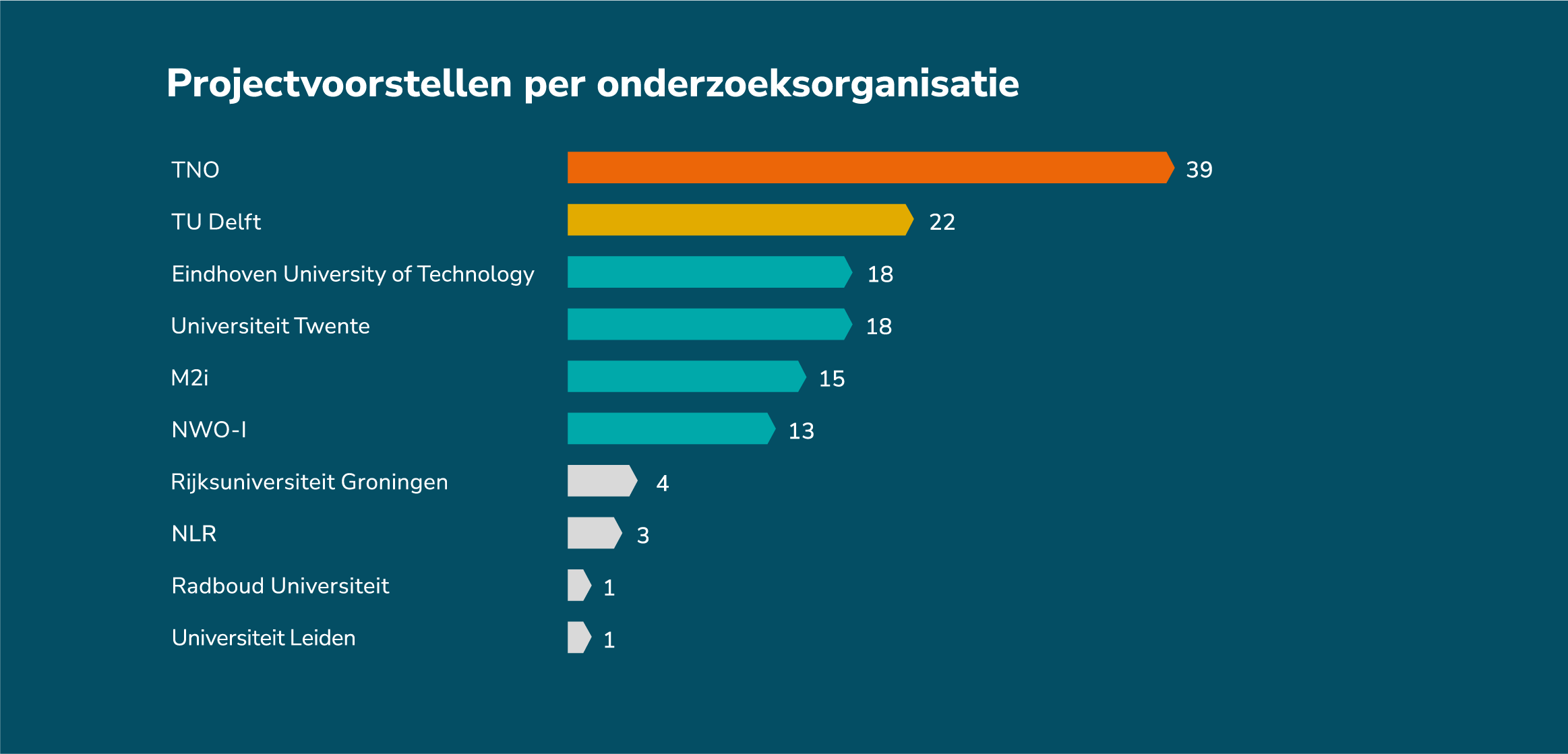 We zijn trots op de groei, duidelijke focus op technologische innovatie, de urgente transities, de verbinding met de Nationale Technologiestrategie en de diversiteit in type onderzoek in onze publiek-private innovatieprojecten. We zien eveneens een duidelijke groei in de deelname MKB-bedrijven en hogescholen aan deze PPS-projecten.